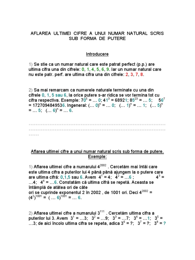 1 A Aflati Ultima Cifra A Numarului A 72 La Puterea 2003 63 La