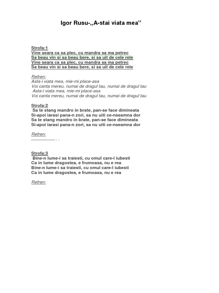 Asta I Viata Mea Versuri