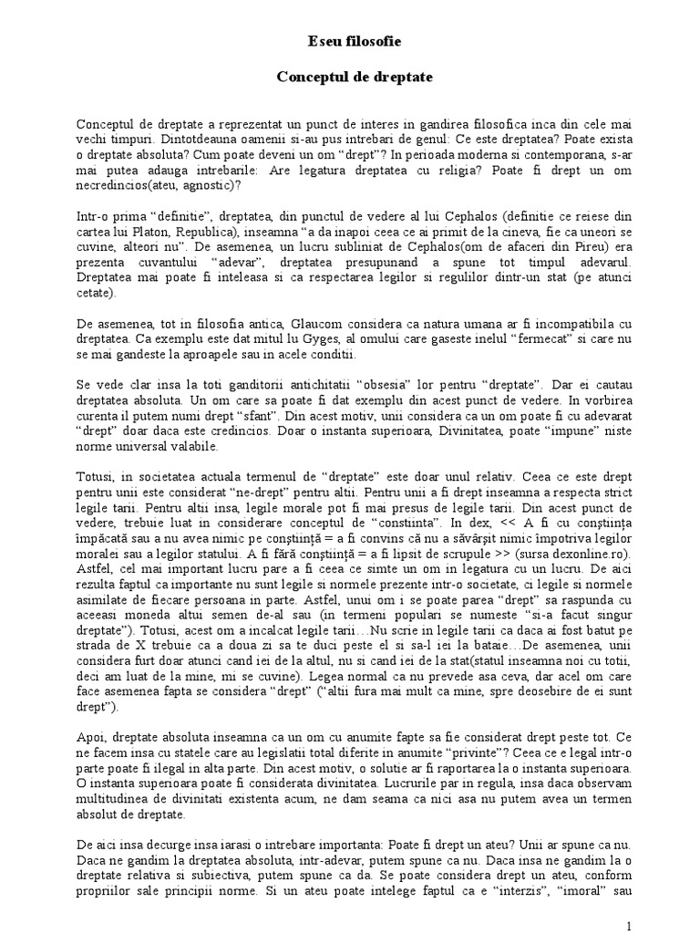 Eseu Filosofie Conceptul De Dreptate