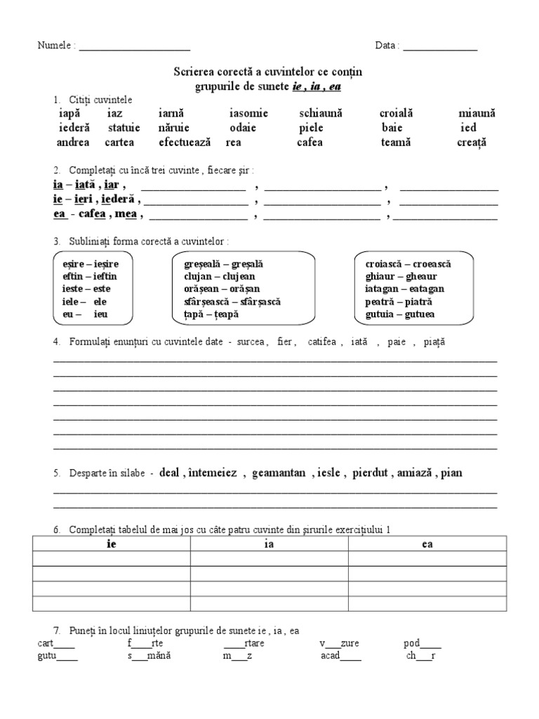 Dati Exemple De Cate Doua Cuvinte Cara Sa Cuprinda Diftongii Ea