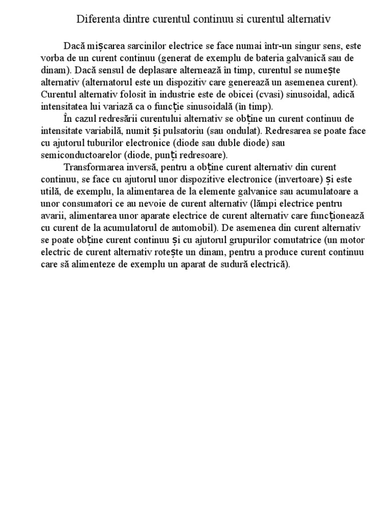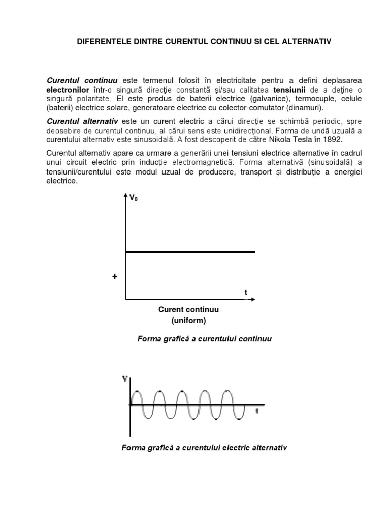 Diferenta Dintre Curentul Alternativ Si Cel Continuu Albu Marcel