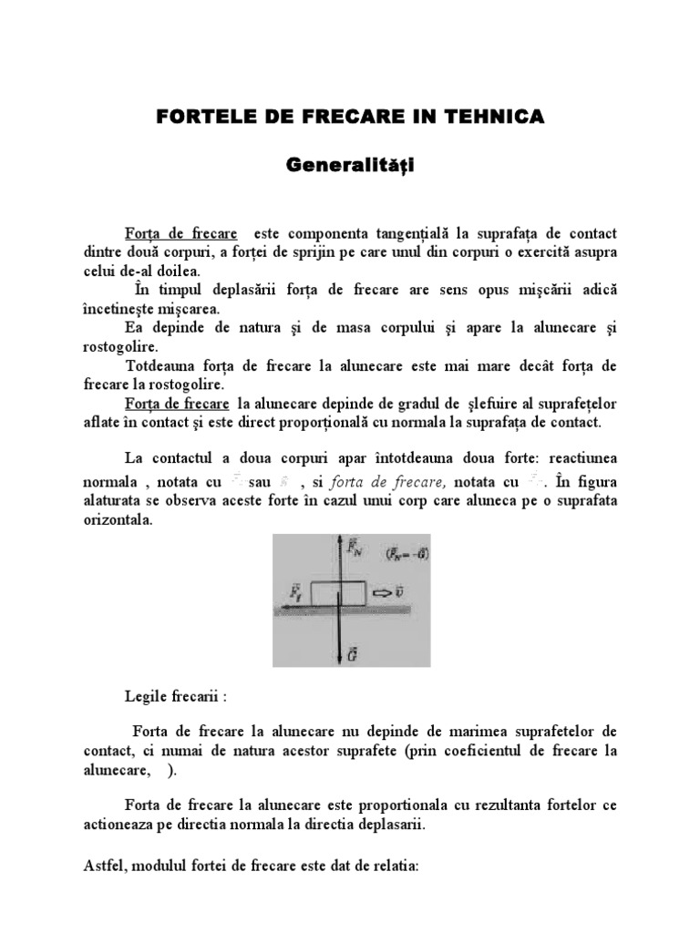 Principiile Mecanicii Forţa De Frecare Forţa De Tensiune Forţa