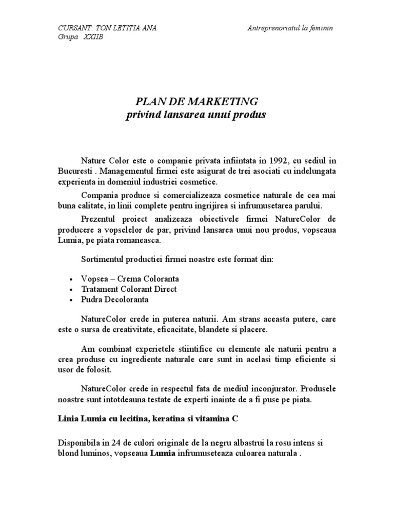 Proiect Lansarea Unui Produs Nou Pe O Piata Straina Marketing