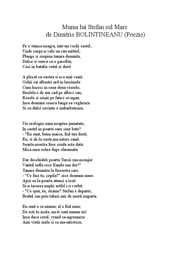 Poezia Zilei Muma Lui Stefan Cel Mare Dimitrie Bolintineanu