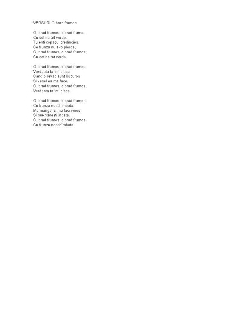 O Brad Frumos Versuri Youtube