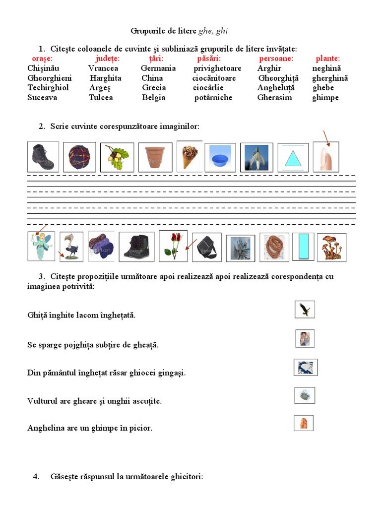 Grupurile De Litere Ghe Ghi Fișă De Lucru Teacher Made