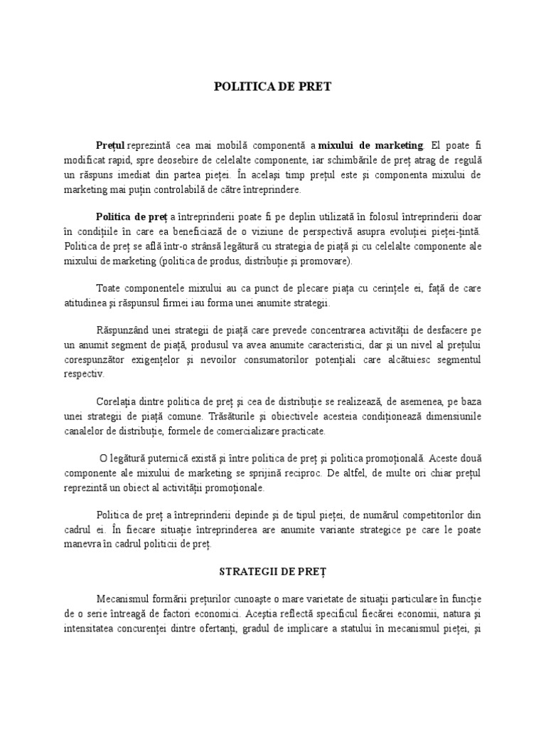 Politica De Pret