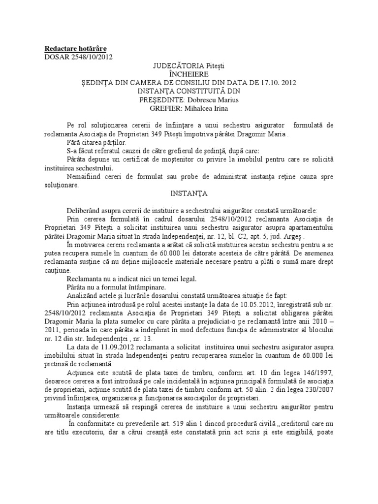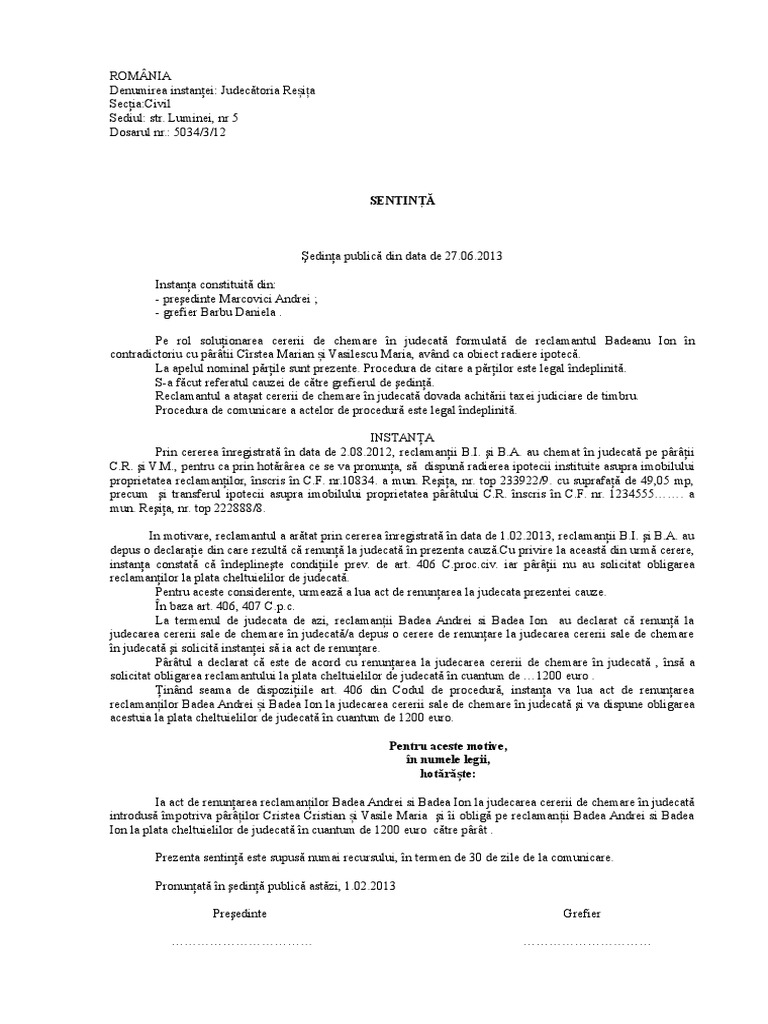 Hotarare De Renuntare La Judecata Ncpc