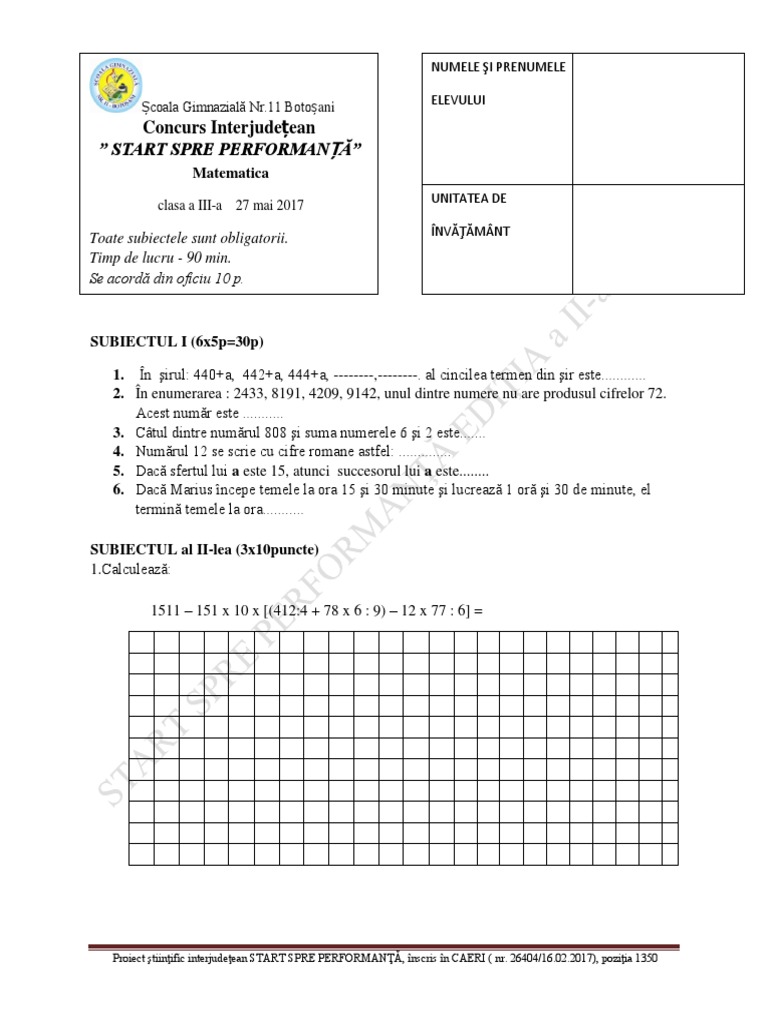 Proiect Stiinţific Interjudeţean Start Spre Performanţă Inscris In