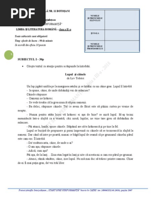 Fise De Evaluare Clasa A Iii A Limba Si Literatura Romana