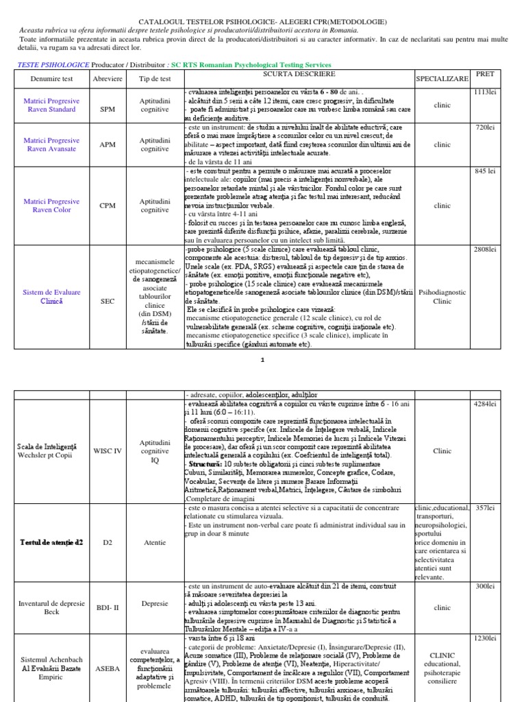 Catalogul Testelor Psihologice 2012 2013 By Centrul De Resurse Si