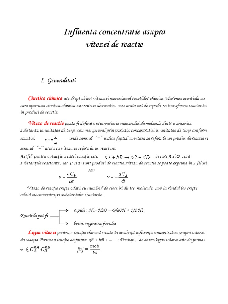 Referat Factorii Care Influenteaza Viteza De Reactie Chimie Generala 6443